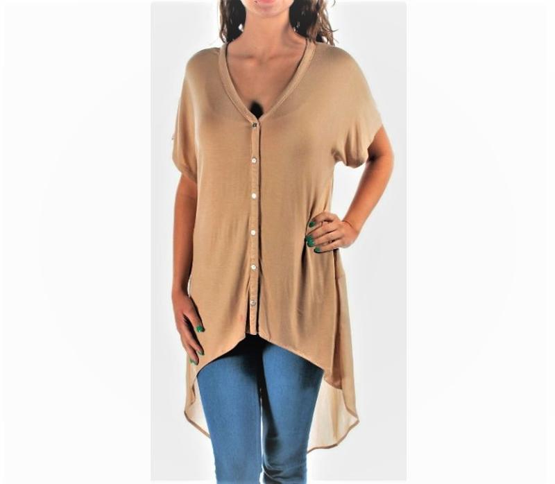 Кардиган-фрак бежевый с короткими рукавами и шифоновой спинкой s
