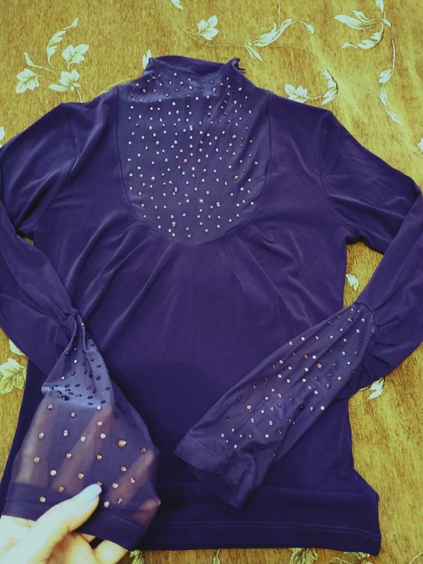 Шикарная блуза-сетка Angie. Глубокий фиолетовый цвет + камешки на груди и рукавах. Очень нарядная. Турция Разм М