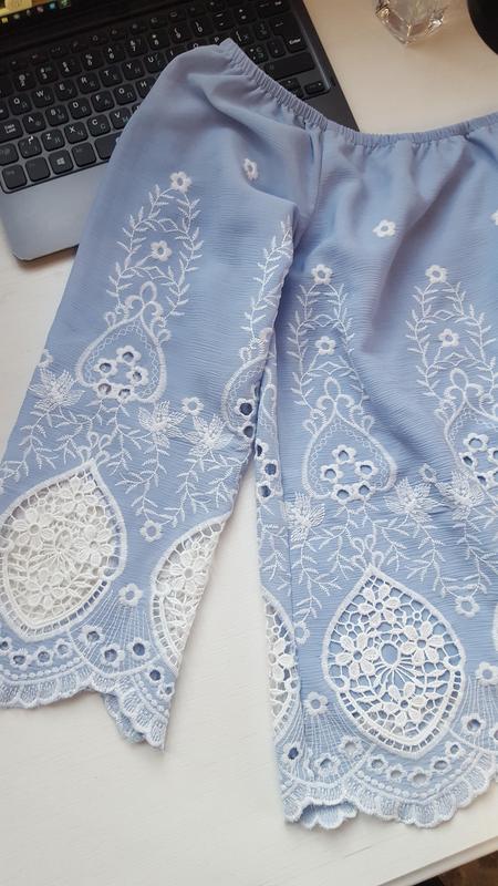 Блузка нежно небесного цвета с белыми ажурными вставками Безопасная оплата после согласования Обращаю ваше внимание: в указанную сумму не включено комиксия платформы, так что при покупке учитывайте дополнительные 15%.