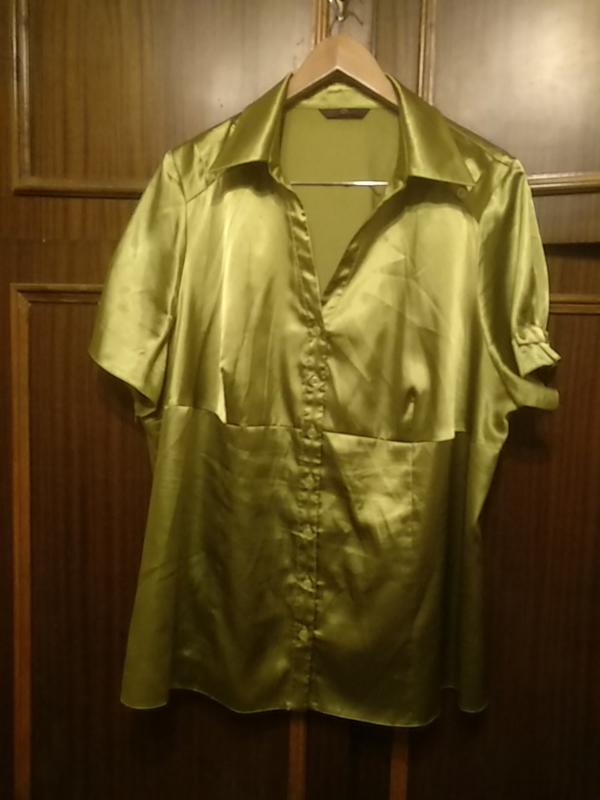 Атласная блузка оливкового яркого цвета. размер евро 24. пог 65/66