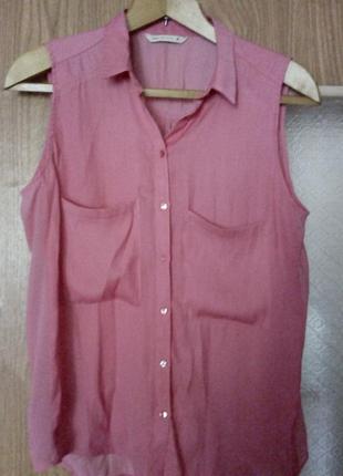 Блуза из лёгкой ткани без рукавов, на пуговицах, с карманами.