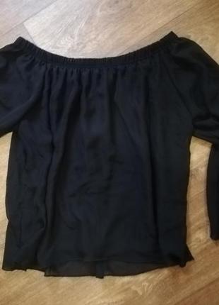 Блуза женская чёрная длинный рукав клеш волны свободная открытые плечи на резинке