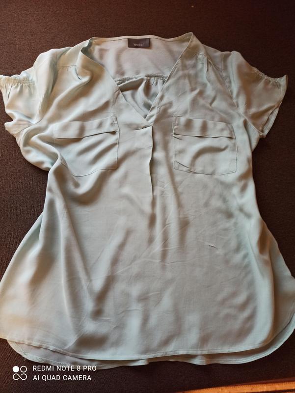 классная блуза рубашечного типа .100%вискоза оч.легкая,тонкая цвет не передался,ближе к мяте.пог.54длинна 67