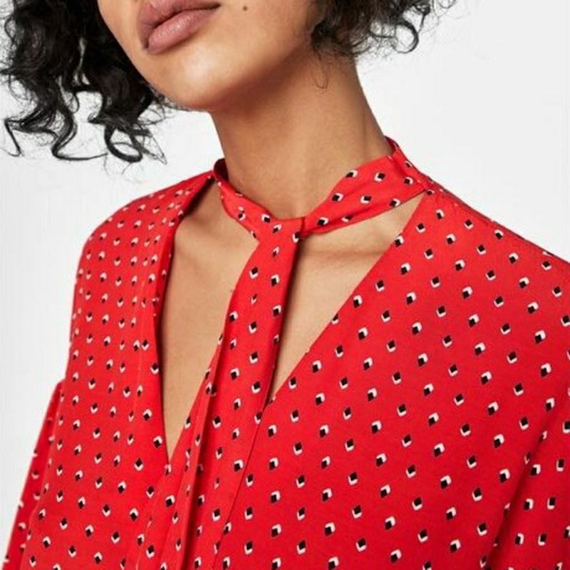 Блуза в ромбик ZARA з бантом і рукавами-воланами. В ідеальному стані. Розмір S