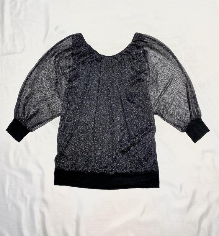 Фирма Chicoree Размер написан M, но и на полномерную L отлично (очень хорошо тянется). Цвет чёрный. Верхняя часть блузки (эластичная сетка) с добавлением люрексовой нитки (серебро). Внутри майка трикотаж масло. Манжет и низ блузки матовый трикотаж. По всей горловине ,вставлена резинка. Воздушно ложиться по шее. Проймы рукава нет. Сетка цельнокроеная, «летучей мышью». Очень мягкий и приятный материал. Невесомые и объёмные рукава. Состояние новой вещи. Недостатков и следов носки нет совсем!!! Замеры в спокойном состоянии: ▪️длинна 68см ▪️рукав от горловины 49см/+ 7см манжет ▪️полуобхват манжета 9см ▪️пог. по внутренней майке 48см ▪️низ полуобхват 44см Отвечу на интересующие вопросы Отправлю удобным для Вас способом Наложенным - предоплата P.s. Станет одной из самых любимых Ваших вещей ,100% )