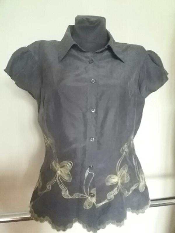 блузка "машинного"цвета,расшита оливкового цвета шёлковой нитью.легкая,приятная к телу,приталенная пог-50 см смотрите и другие мои объявления!