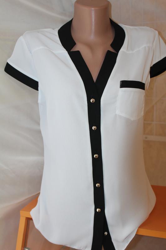 Літня блузка білого кольору з обробкою чорного кольору. Розмір 42. (на 42-44) Ог 88см От 78 см Плечі 36 см Довжина 60 см Швидка відправка, оперативна обробка замовлень