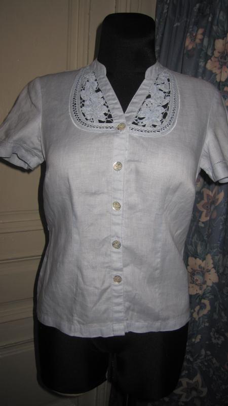 блузка голубого цвета.лен.ПОГ 47.ПОТ 40.длина 59