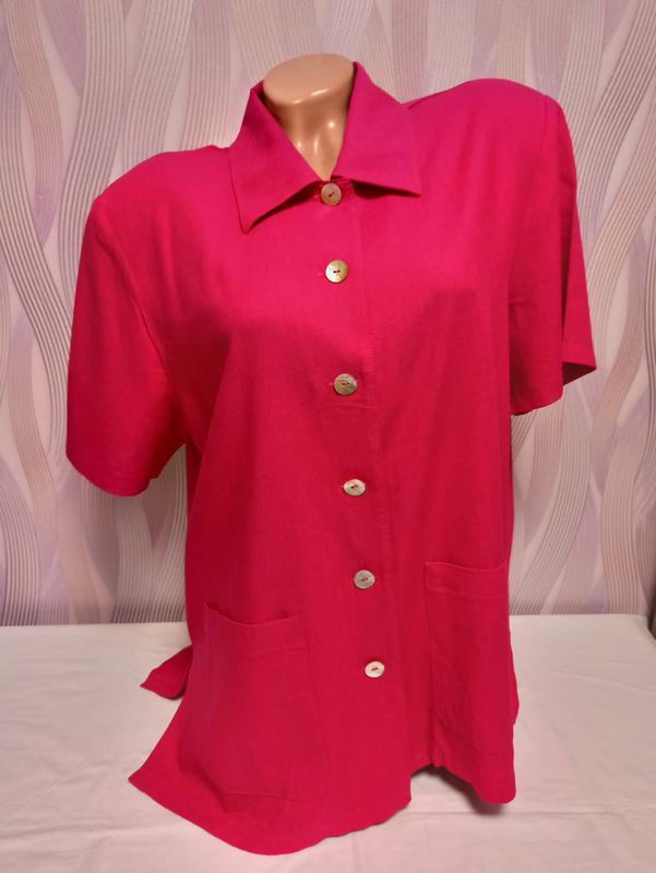 Яркая блуза, фуксия, короткий рукав, 20% лен р. 3-4xl, германия