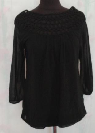 Блуза чорного кольору, прозора, блискавка золотого кольору нашита зверху. Дуже красива , нарядна блузка. Довжина 60см, ширина під руками 48см. Залишилися питання пишіть-відповім. Оплата на карту. Відправлю Укрпоштою вівторок,середа,п'ятниця. Новою за домовленістю