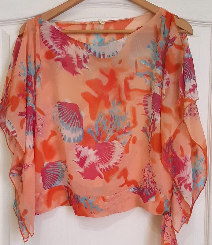 блузка легкая, в хорошем состоянии. Рукав- летящий. Снизу завязывается на бант