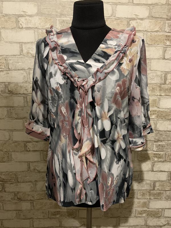 Блузка с цветами и рюшиками . Приятная ткань к телу.
