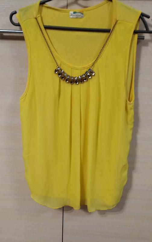 Нарядная летняя блуза, трикотаж тянется, среди наших шифон, который скроет животик, декорирована приличным колье. Очень яркая, нарядная, в отличном состоянии.