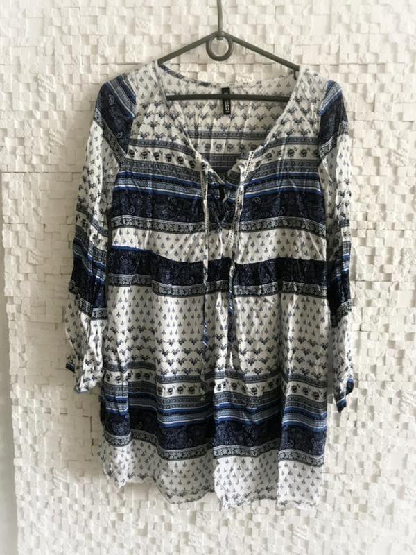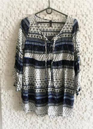 Блуза от H&M (оригинал) Из натуральной ткани Размер 8 (M, L) Можно носить как блузу, а можно - как тунику на пляж.