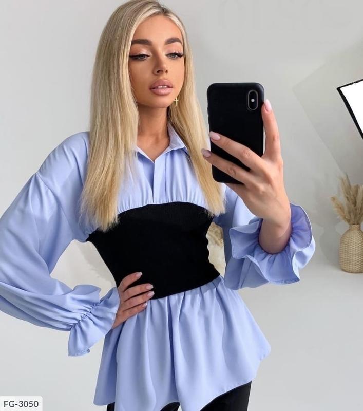 Стильная,яркая блуза. Размер:42-44,44-46. Ткань:софт+трикотаж-рубчик,Турция! Цвет:голубой,белый,беж. 16.06