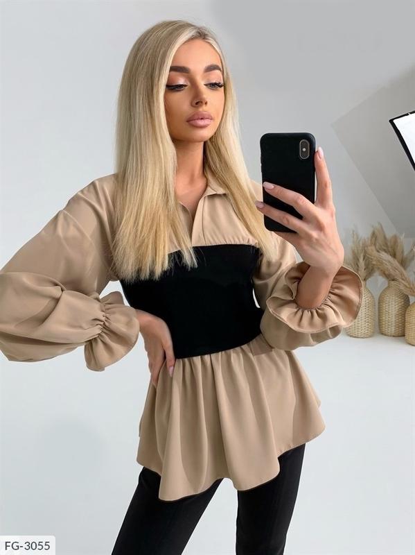 Стильная,яркая блуза. Размер:42-44,44-46. Ткань:софт+трикотаж-рубчик,Турция! Цвет:голубой,белый,беж. 16.06