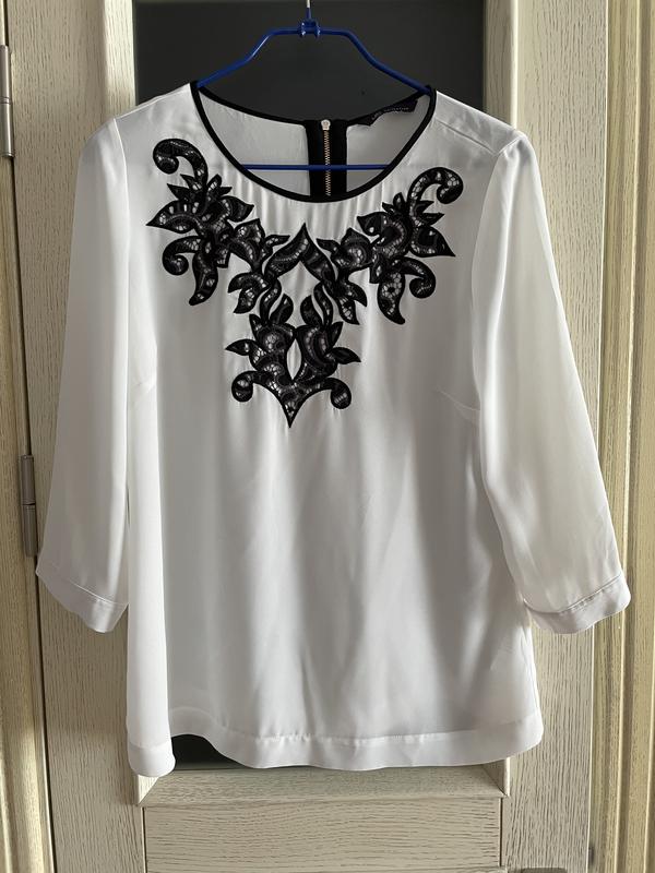 Блузка M&S розмір 10, під грудьми 95-96, довжина 64см, рукав45 см , дуже красива і нарядна.