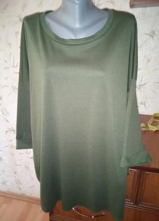 Євро розмір 46/48, дивіться виміри. Насичений темно-зелений колір. Тканина трикотаж, не щільна, трохи тягнеться, 80% поліестер, 20% віскоза. Стан хороший, є кашлатость. По боках гудзики для декору. Довжина від верхньої точки плеча до низу попереду 79. Довжина від верхньої точки плеча до низу ззаду 85. Довжина рукава від горловини 59. П/про біцепса 20 тягнеться до 25. П/про грудей 73 тягнеться до 78. П/о талії 67 тягнеться до 72. П/про стегон 72 тягнеться до 77. 27.