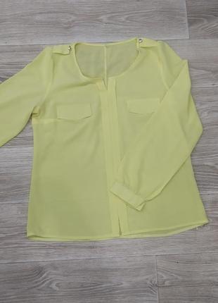 Шифоновая блуза жёлтого цвета. Усть небольшие нюансы на клапанах( смотреть на фото). ОГ-48 см Длина изделия- 60 см. Носила на 38 размер.