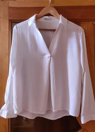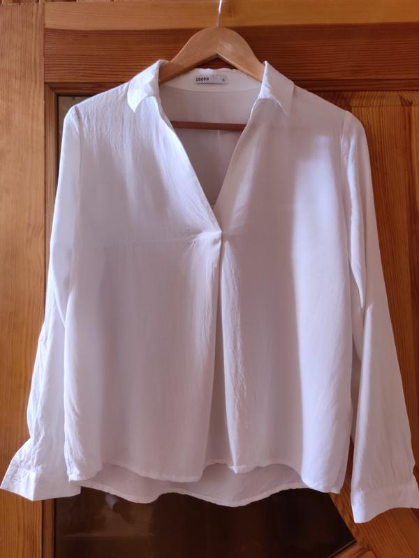 Блуза рубашечного кроя из вискозы. Рукава могут поворачиваться и фиксироваться хлястиком.