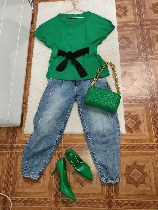 блуза Zara, яркого , трендового, зеленого цвета, по бирке S, свободного кроя, подойдет на М, сзади на поясе широкая резинка