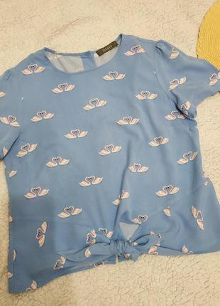 Стильная блузка с лебедями от Oasis. Размер указан 10. Состав 100% вискоза. Спереди на завязке, сзади на пуговицах. Длина 55 см ПОГ 47 см
