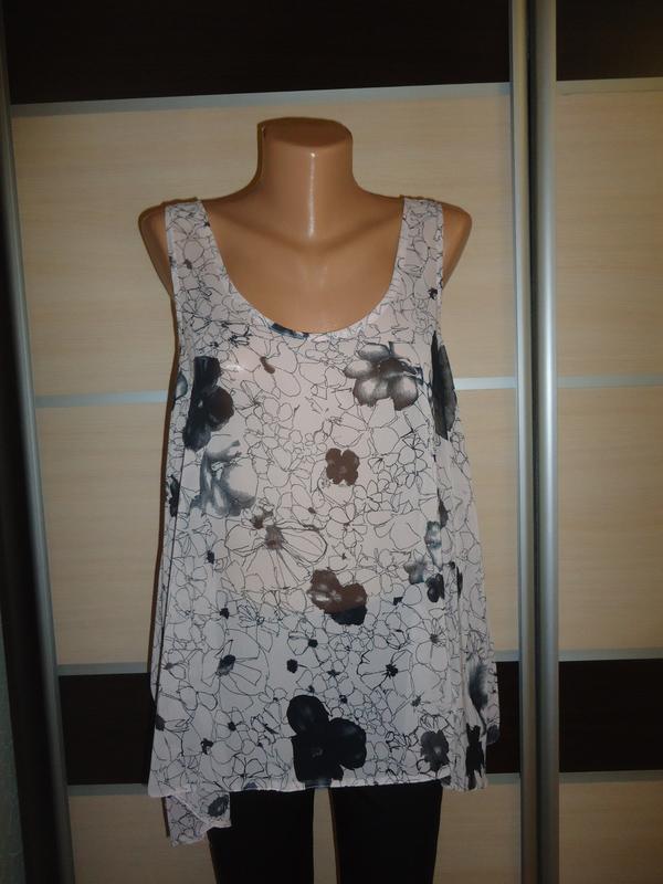 Указан размер 14 Длина - 63см, сбоку до 71см ПОГ 48см ПОТ около 68см Есть еле заметные 2 затяжки сбоку Ткань просвечивает