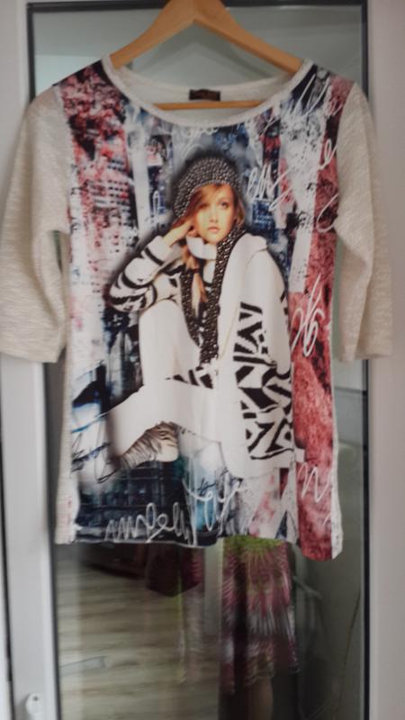 Реглан. футболка. Рукав и спина - тонкая вязка. Рукав до локтя. Можно сделать еще короче. есть "хлястики". Пуговиц не предусмотрено. Видимо нужно эти "хлястики" пришивать. Не одевалась ни разу. только мерялась.