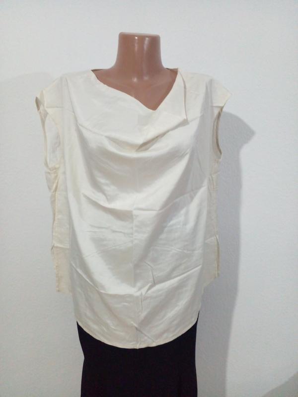 Бірок немає,можливо самошив,тканина схожа на шовк,думаю віскоза + шовк,перед двойний і трохи довший ,як і треба для вагітних,щоб перед не піднімався. Пог-65 Поб-65-66 Довжина-61-67( перед) Без нюансів