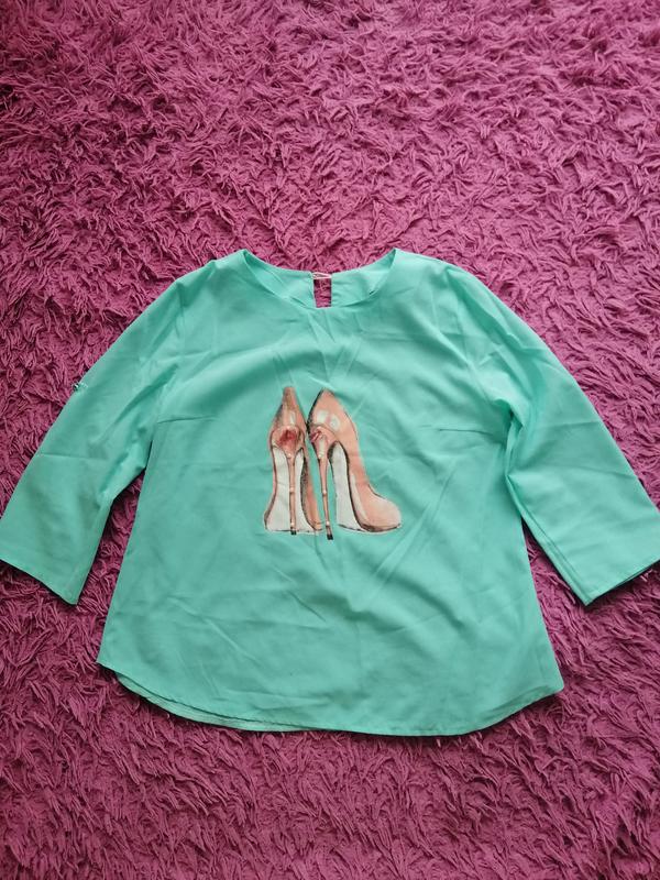 Блушка Ткань шифон Раззмер 44, рукав 3/4 Цвет мята Длина по спинке 58см, длина рукова от плеча 40см