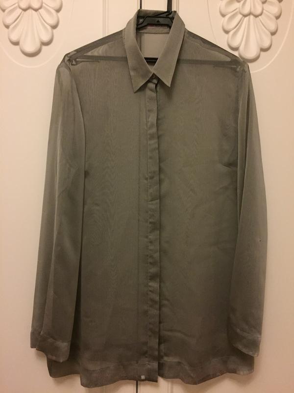 Длина по спине 78 см, рукав 62,плечо 14,в груди 53 см, в бёдрах 55, ширина рукава 16,5. По низу рукавов и блузы зашиты пайетки. Есть дефект на рукаве сзади, маленькая дырочка ниже локтя, показана на двух последних фото.Цвет мышиный серый с переливом.