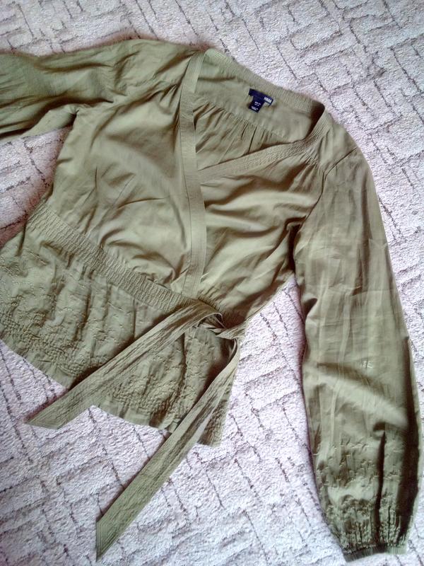 гарна блузочка натуральна, легенька, кольору хакі,з гарними рукавами, плечі то, Пог 46, Пот 37, довжина 60, рукава 63