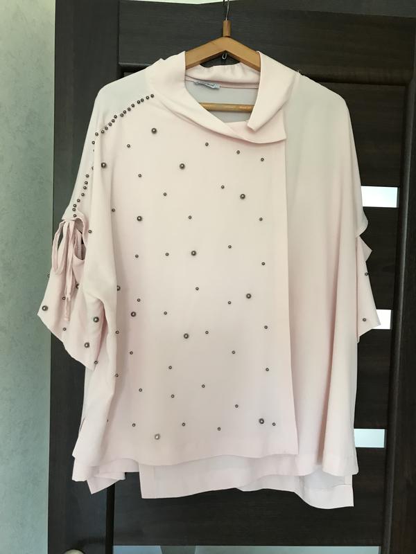 Блузка рожевого кольору, з геометричним кроєм. Широкі рукава. Тканина тягнеться.