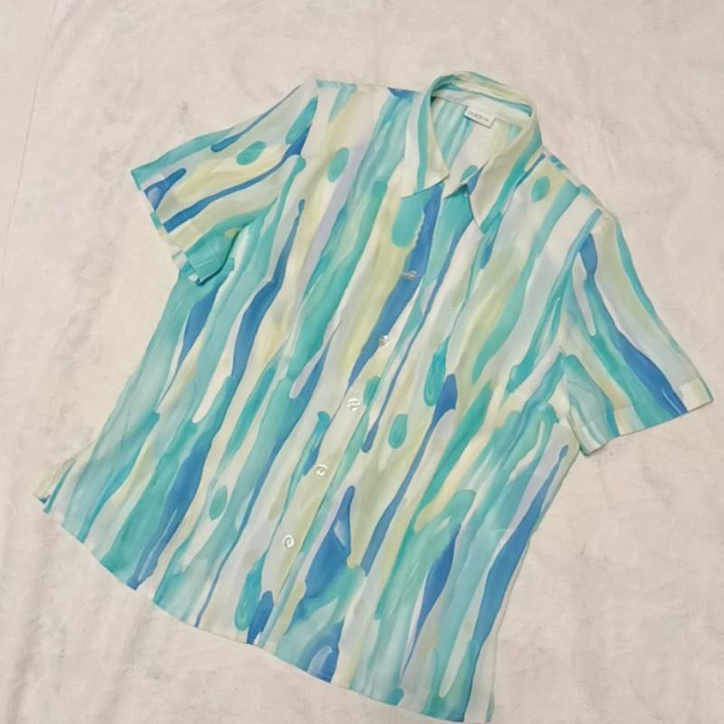 Легка літня блуза. ПОГ 55, пот 50, ПОБ 55, довжина 65. По бокам розрізи 10 см.