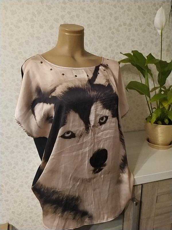 Блуза футболка перед штучний шовк зад трикотаж на півобхат грудей 54 см довжина 70 см