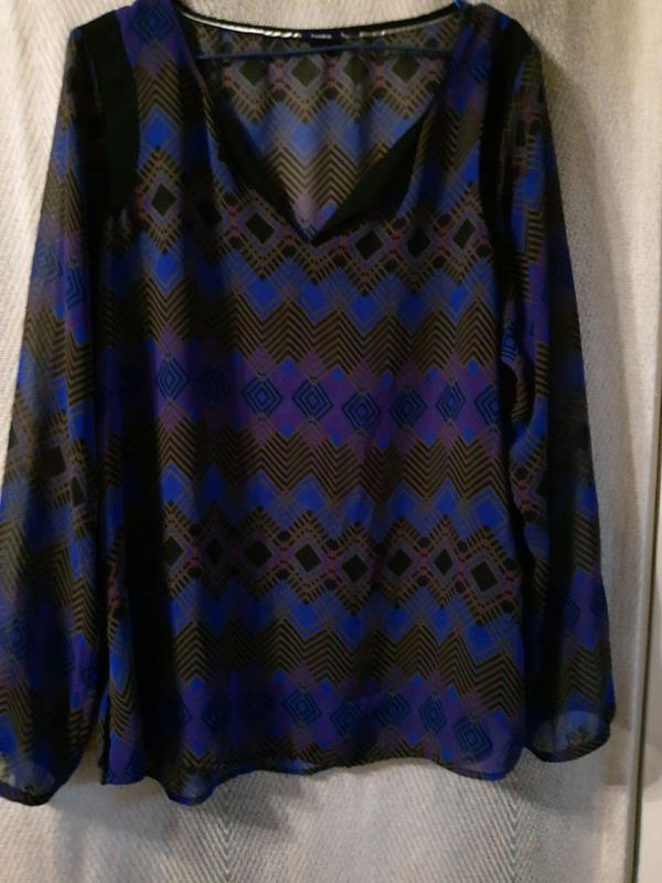 Женская вечерняя черная с синим шифоновая блузка. летняя яркая блуза,