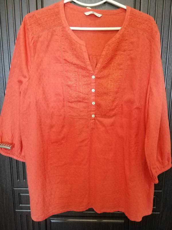 Блузка спокойного оранжевого цвета на втором фото настоящий цвет. 100 %котон тонкий как раз на жаркую погоду. Производство Индия. Высота изделия 76 см, плечи 44 см, ог 130 см, низ 140 см.