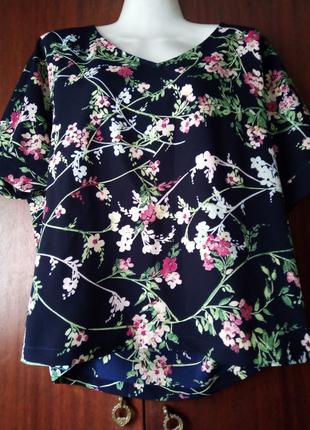 Яркая,в цветочный принт блузочка пог-58 дл.-61 рук.спущенный,от горловины 36 см по бокам разрезики. Оплата на карту.