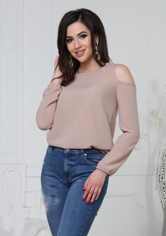 Модний одяг оптом від нашого українського виробника – це стильно, сучасно і доступно. Не варто переплачувати за дорогі бренди, в нашому магазині можна придбати красиві наряди за низькою ціною. Каталог товарів рясніє яскравими новинками – ви точно знайдете те, що шукали. Модна жіноча блузка з відкритими плечима створена для романтичних і витончених дівчат. Якщо потрібно створити ніжний жіночний образ – ця блузка легко впорається з таким завданням. Модель добре поєднується зі спідницями, брюками, джинсами і шортами. Блузочка з довгими рукавами і вирізом горловини круглої форми. Особливість моделі – відкриті плечі. Такий дизайн блузи посилює привабливість і надає образу сексуальності. Виготовлено виріб з невагомого креп-шифону. Легка тканина має ледь ширшаву текстуру, добре пропускає повітря і вологу. При контакті зі шкірою матеріал не викликає неприємних відчуттів і подразнень.