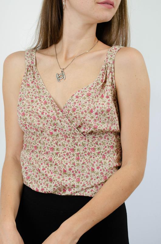 Gap бежевая, телесная блуза в цветочный принт, узор с эффектом на запах