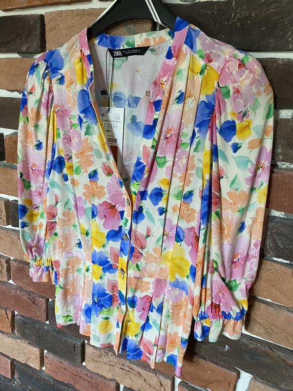 Нова, рукав 3/4, ліхтарик, ззаду резиночка, підкреслює талію, недовга.Довжина по спинці 58 см