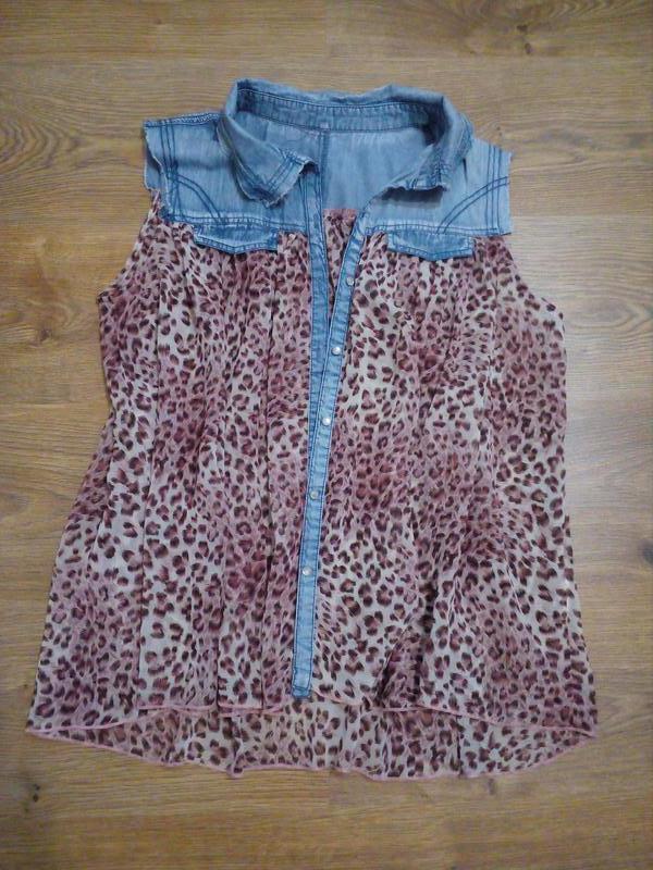 блуза новая , верх тоненький джинс ,низ плотный шифон , перламутровые пуговки . в живую смотрится на много круче. может подойти на любой размер