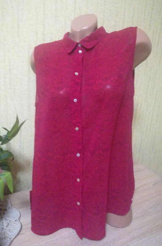 Шифонова блуза безрукавка. При заказе от 100 грн. Размер указанного 44 евро подойдет и на 46.Замеры: Ног 58 см-вит Нот 60 см.Но по низу 62 см.Длина 76 /68 см Дэффектов нет