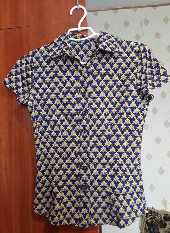 Легкая блузка, ткань приятная к телу. Подойдёт на XS, S. 95% cotton и 5% lycra