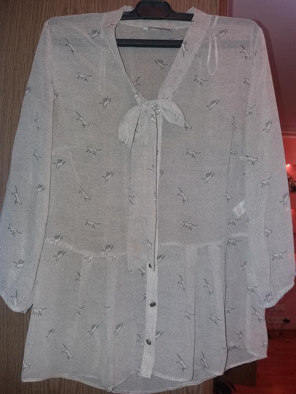 милая блуза с кошками, бант, рукав 3/4металлические пуговицы, размер 12, носилась мало, в идеальном состоянии, привезена из Европы
