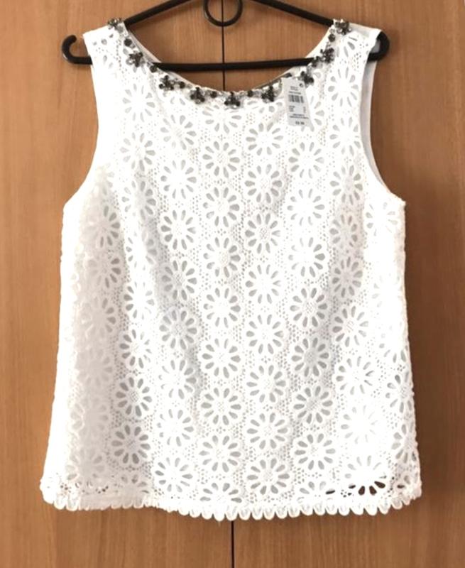 Белоснежная красивая блузка , по верху красивые камни; размер по бирке 10/38. Длина 53 см. ПОГ 44 см Котон/полиэстер.