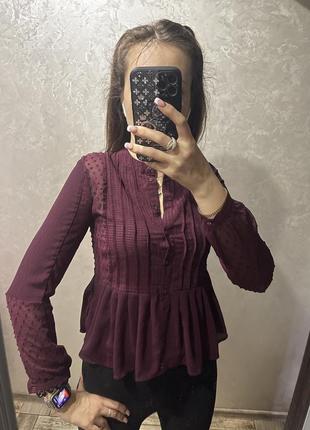 Блуза прошва и шифон в цвете марсала фирмы new look