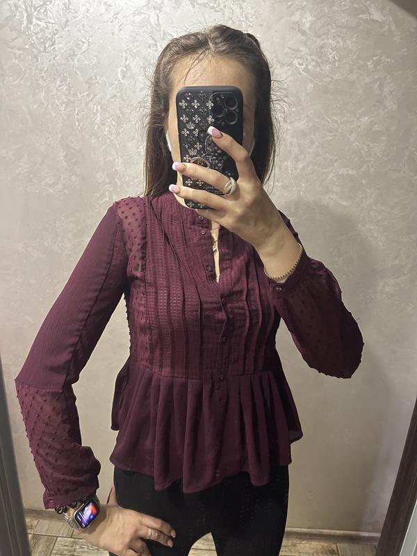 Блуза прошва і шифон в кольорі марсала фірми new look