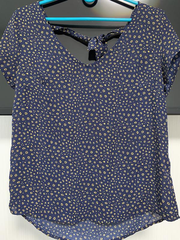 Блуза шифон На спинці можна зав‘язати бант Виріз декольте, цікавий принт Невагома, не відчувається на тілі Розмір с/м