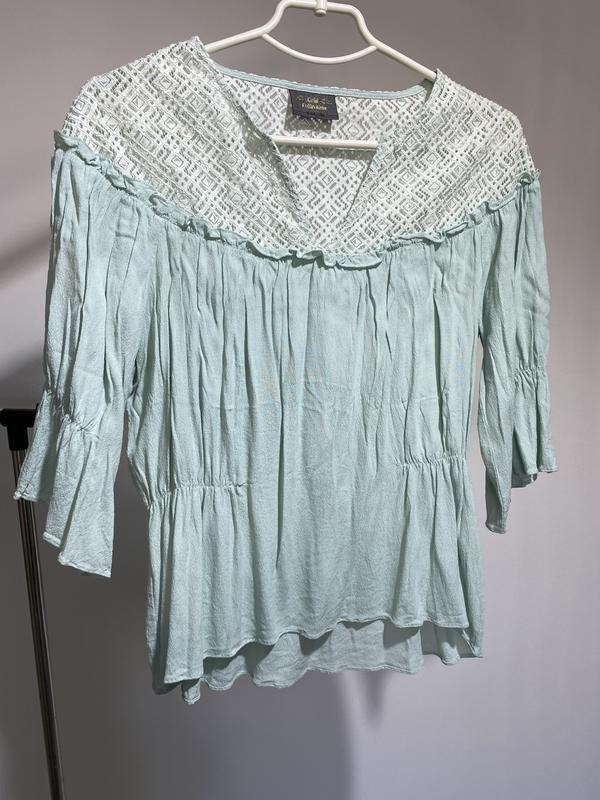 Мятная блуза Очень красивая Выделяет талию за счёт резинок Размер м-л